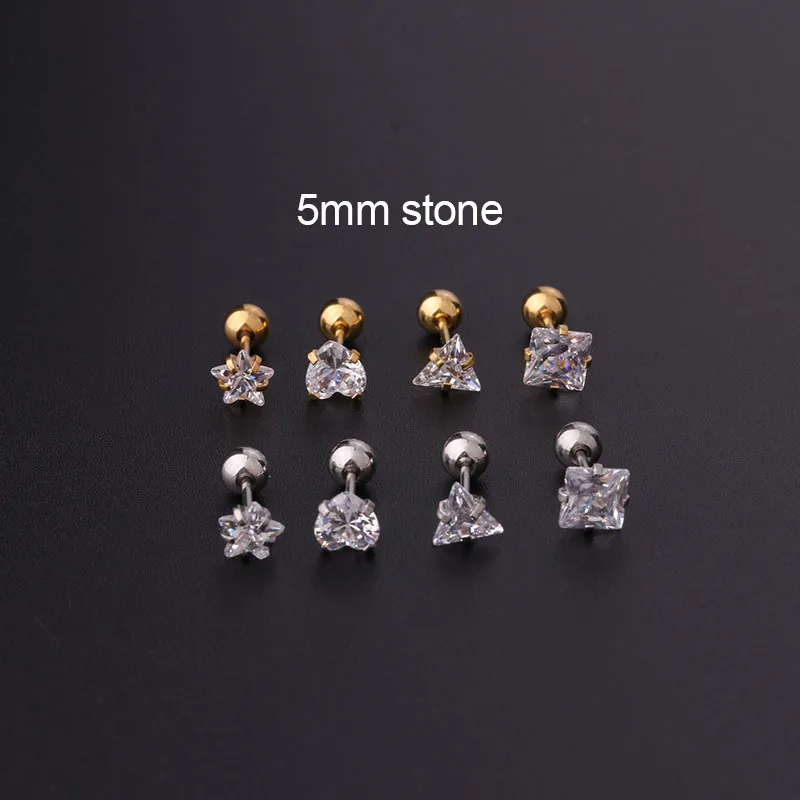 1 шт Мини Сердце треугольный циркон серьги гвоздики для женщин 2021 модные ювелирные изделия из нержавеющей стали пирсинг серьги для подростков ухо манжеты