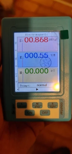 Детектор пришел в отличном состоянии. Никаких претензий нет. Как оказалось оч. полезная вещица. Уровень излучения от антенны мобильной связи в комнате довольно высокий. Нужно что-то предпринимать.