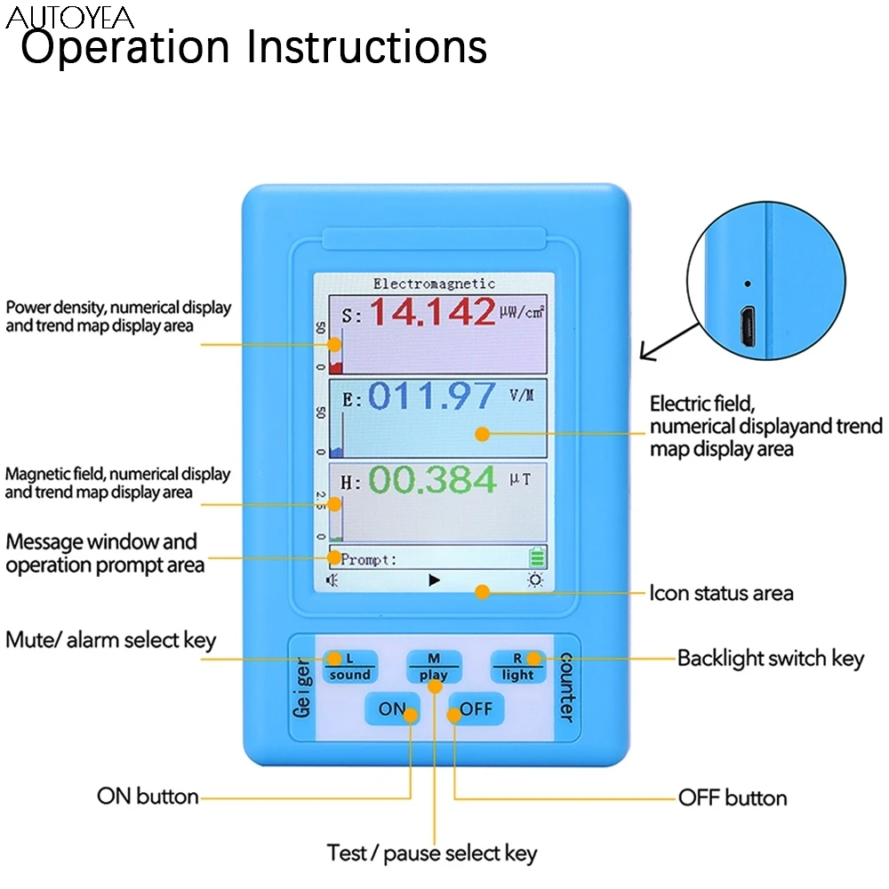 BR-9A портативный детектор электромагнитного излучения, профессиональный дозиметр радиации, измеритель ЭМС, электрическое магнитное поле обнаружения