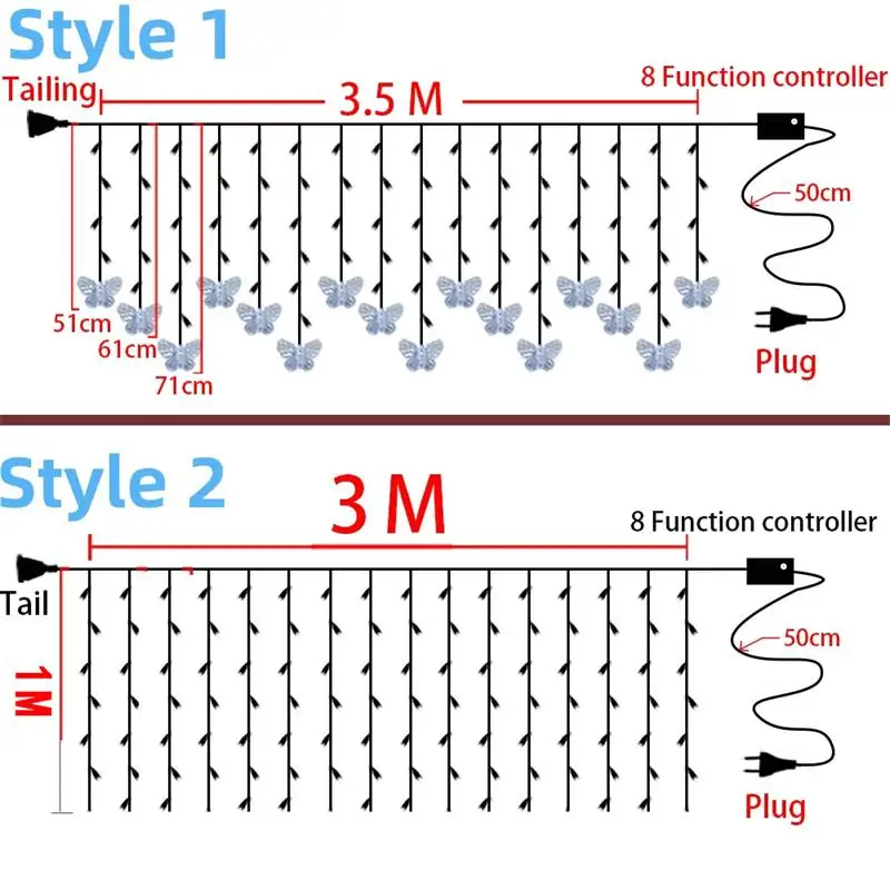 Напоминание:Светильник шторы со снежинками поставляется с штепсельным кабелем. Длина штекерного кабеля составляет 0,7 метра. Если вы чувствуете, что кабель недостаточно длинный, вы можете приобрести дополнительный 3-метровый удлинитель.