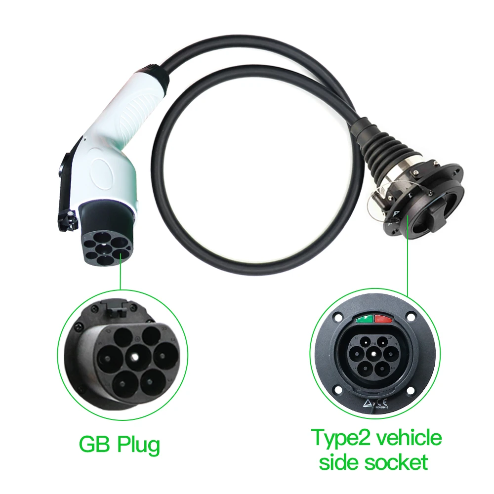 Зарядный кабель EV с двумя GB разъемами типа 2, боковой разъем автомобиля, Удлинительный кабель 1 м
