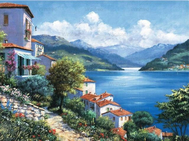 Картина из страз 5D сделай сам, мозаика с мотивом Эгейского моря, п...