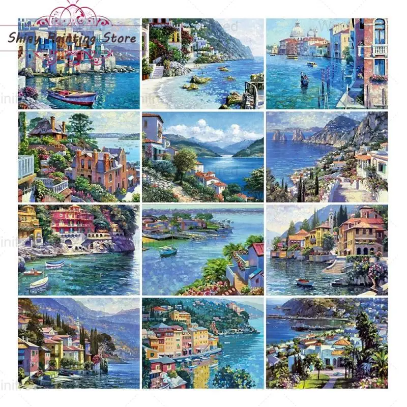 Алмазная живопись 5D сделай сам, вышивка крестиком в морском стиле, полный набор для алмазной вышивки, мозаика в виде пейзажа, настенное искусство, домашний декор, подарок ручной работы