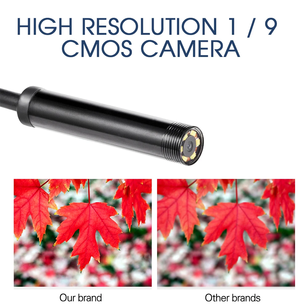 1. Уровень водонепроницаемости IP68, не нужно беспокоиться о повреждении воды. 2. 1080 камера высокой четкости, изображение съемки более четкое, легко установить и использовать. 3. Есть три вида usb-портов: Micro USB, Type-C и USB. Подходит для различных сценариев. 4. С регулируемым белым светодиодный светильник, дополнительный светильник-источник при съемке. 5. 10 м длинный шнур, легко войти в труднодоступные места.