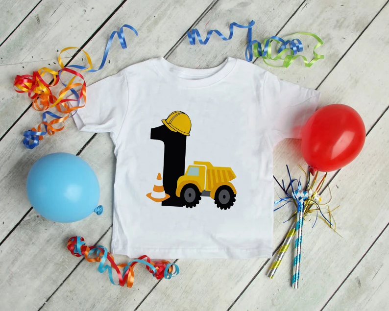 Детские футболки для мальчиков, детские топы с коротким рукавом и экскаватором, детская модная футболка для мальчиков, рубашка для строительства и дня рождения
