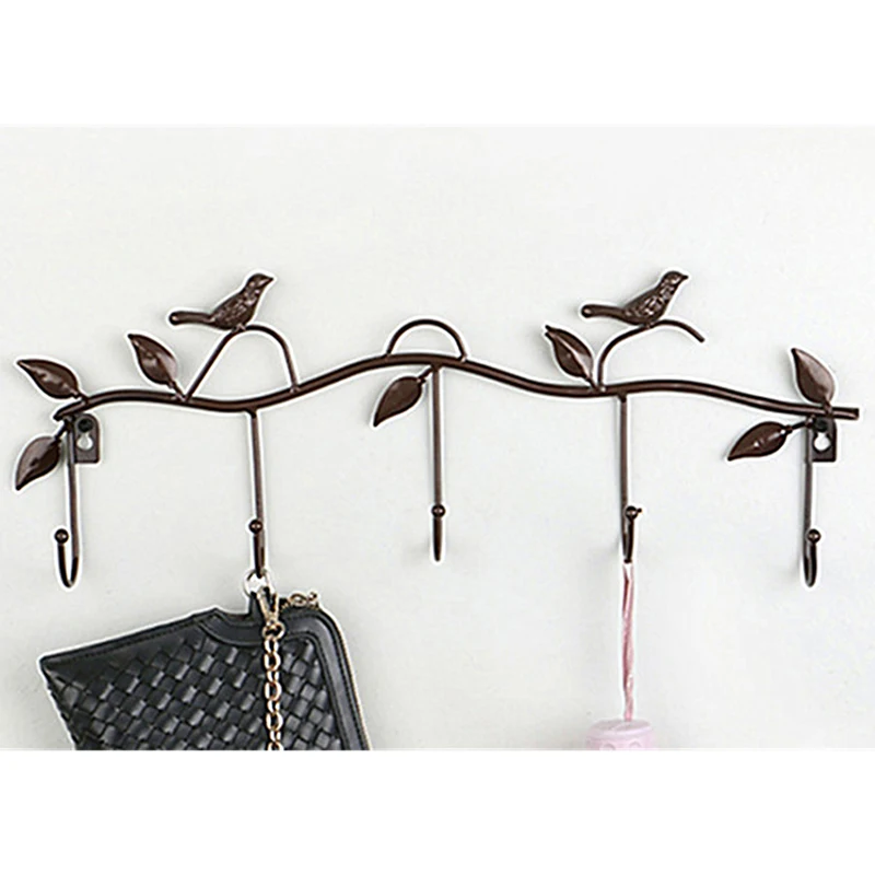 Ретро 5 крючков, кованый железный крючок для птиц, крючок в форме птицы, лист, стена, крючок для платья, крючок для халата, держатель для ключей, крышка