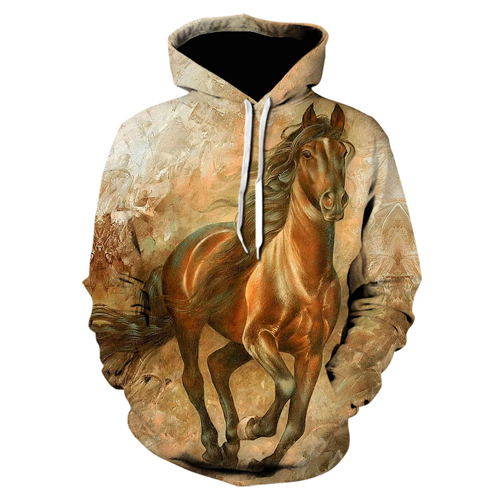 Толстовка с капюшоном и 3D-принтом лошади, толстовки, мужская и жен...