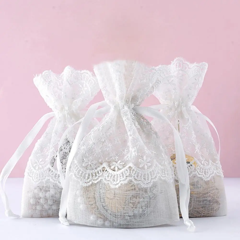 Кружевные мешки из органзы на шнурке для ювелирных изделий, белые и бежевые мешки для упаковки конфет, свадебные подарочные мешки, мешочки с драпировкой, наборы для рукоделия
