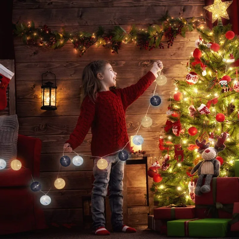 Рождественская гирлянда с хлопковыми шариками, светодиодная гирлянд...