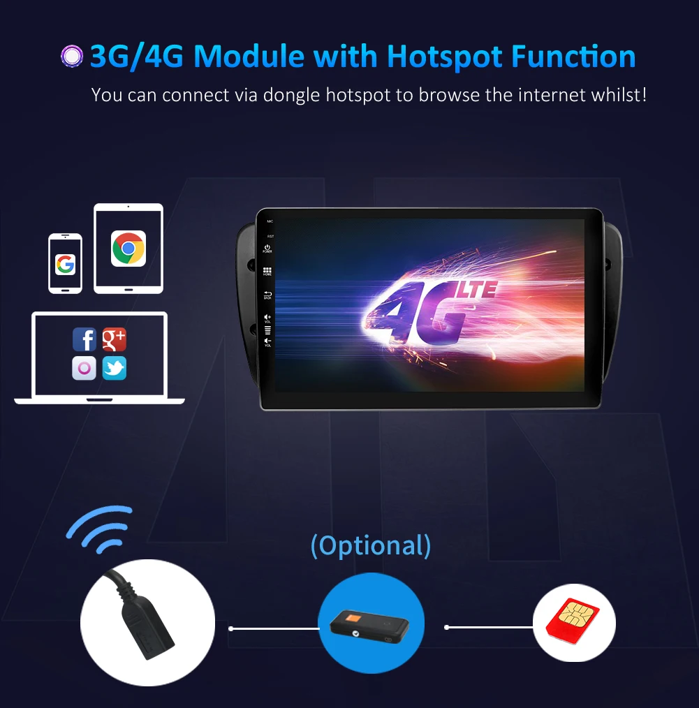 Optional4G Dongle,Digital TV,OBD,DVR,canbus.External microphone