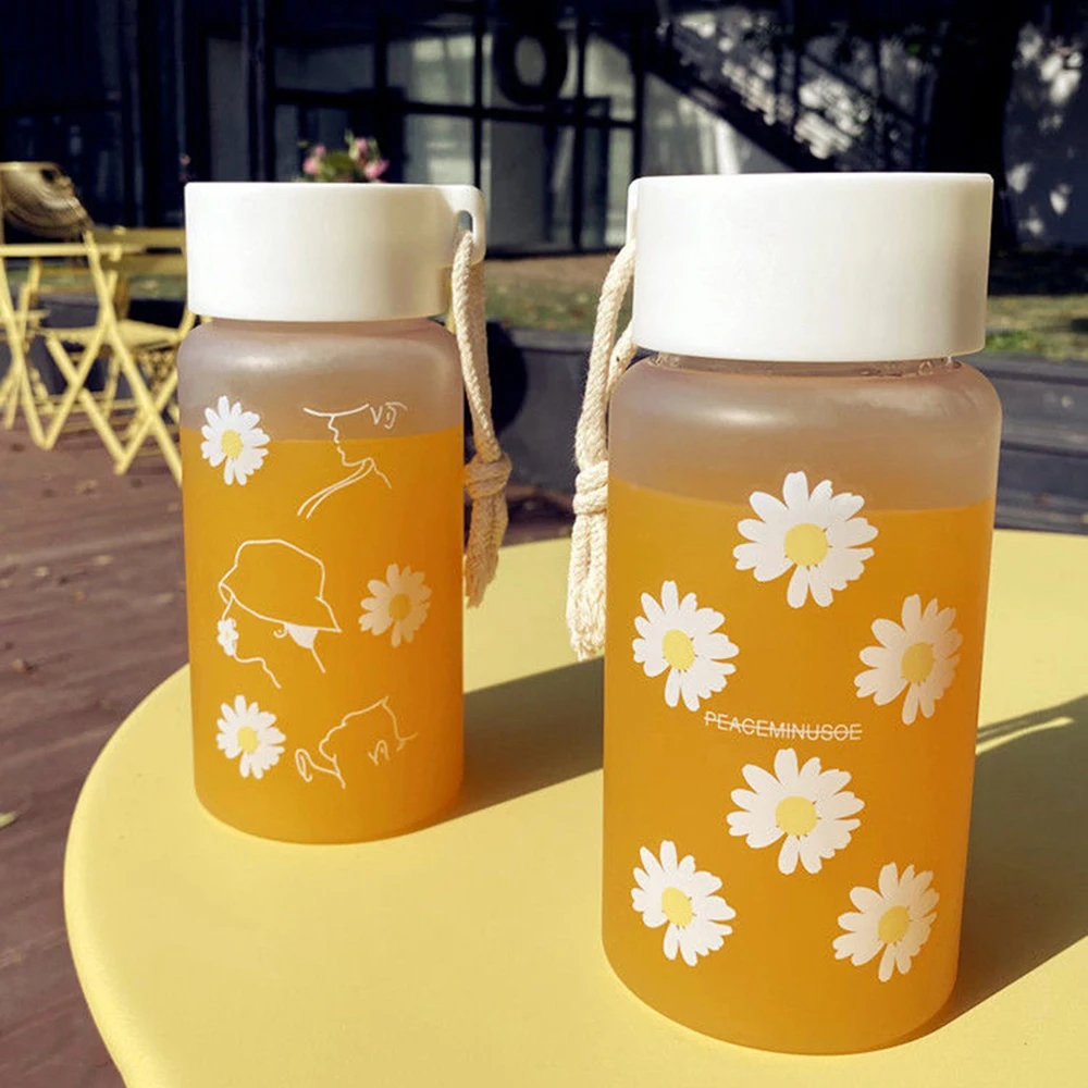 Простая Матовая бутылка для воды с маргариткой, 500 мл, стеклянная ...