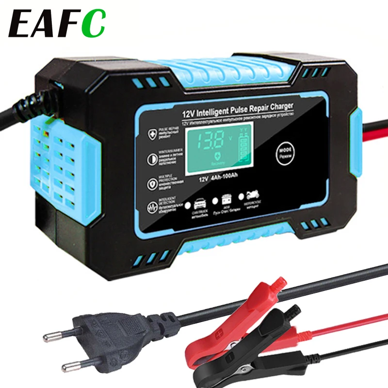 Зарядное устройство для аккумулятора автомобиля, мотоцикла, 12 В, с многократной защитой, с ЖК-дисплеем, аксессуары для автомобильного зарядного устройства