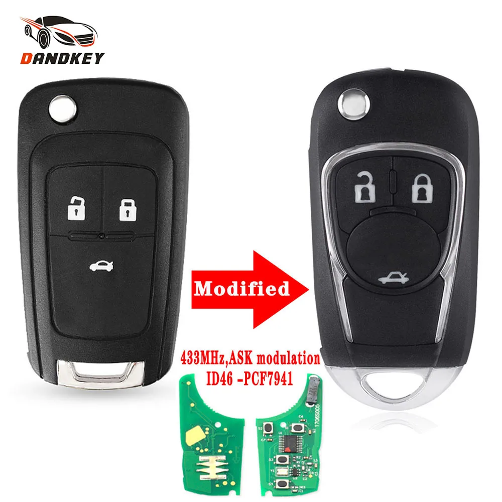 Автомобильный пульт-ключ Dandkey, складной, 3 кнопки, 234 кнопки, 433 МГц, с логотипом