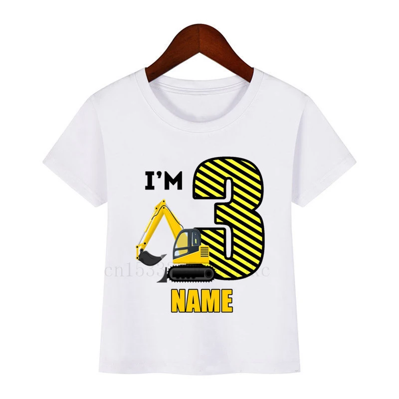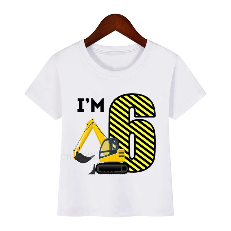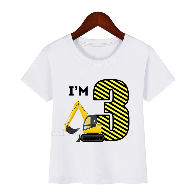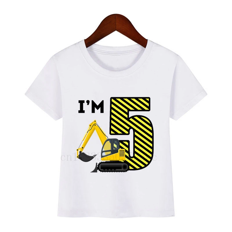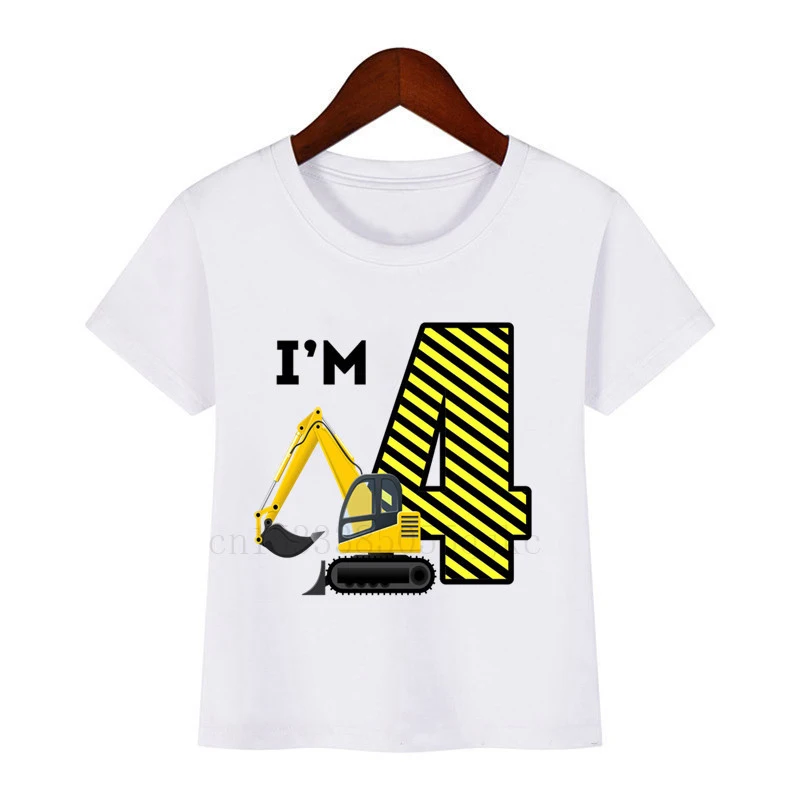 Футболка детская с мультяшным экскаватором, забавный подарок для мальчиков и девочек, рисунок с цифрами на день рождения, 1-10