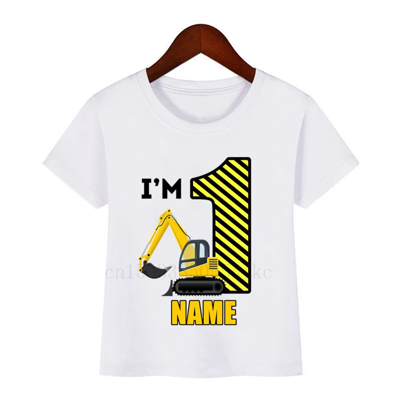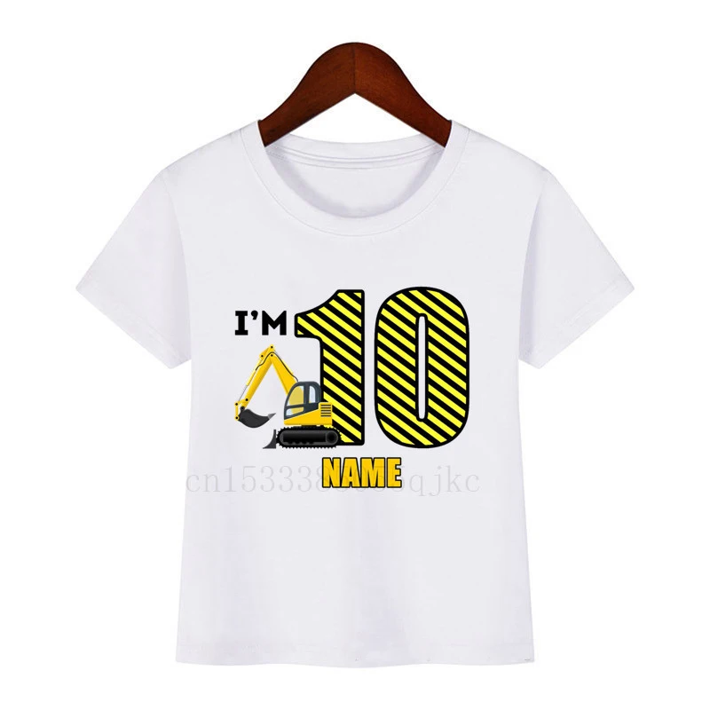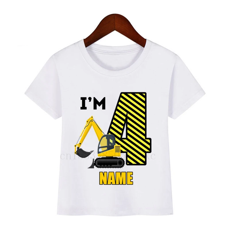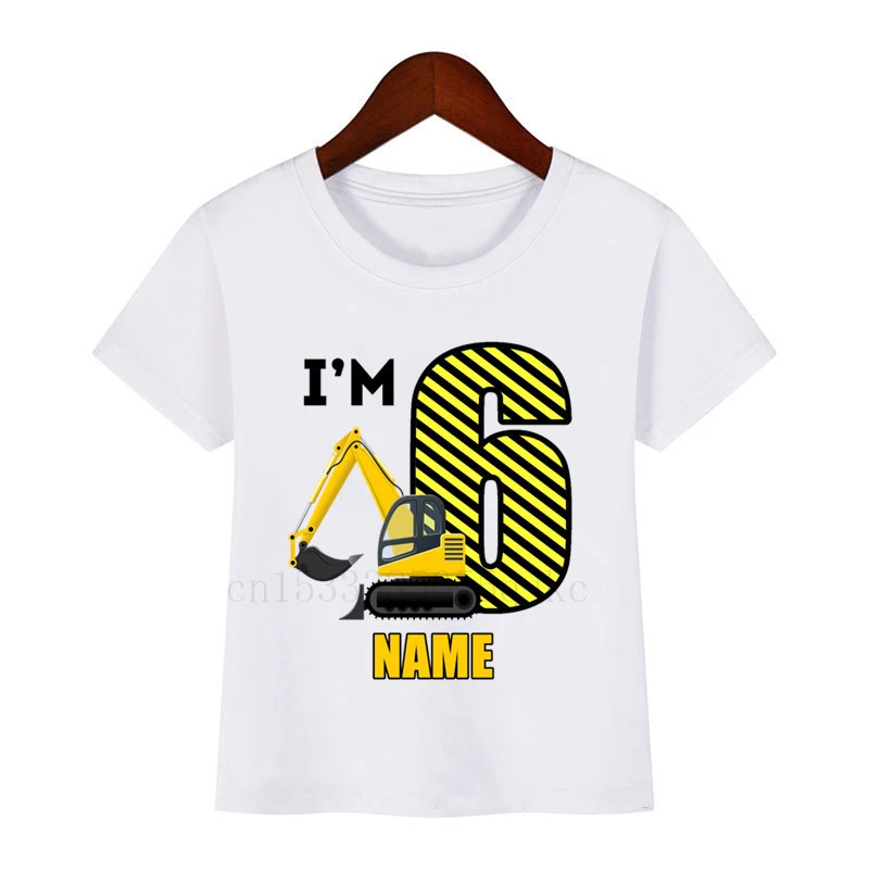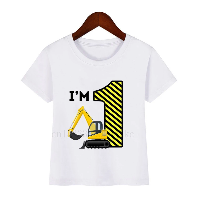 Футболка детская с мультяшным экскаватором, забавный подарок для мальчиков и девочек, рисунок с цифрами на день рождения, 1-10
