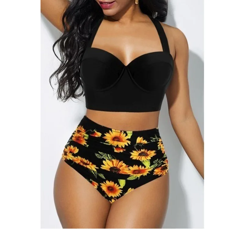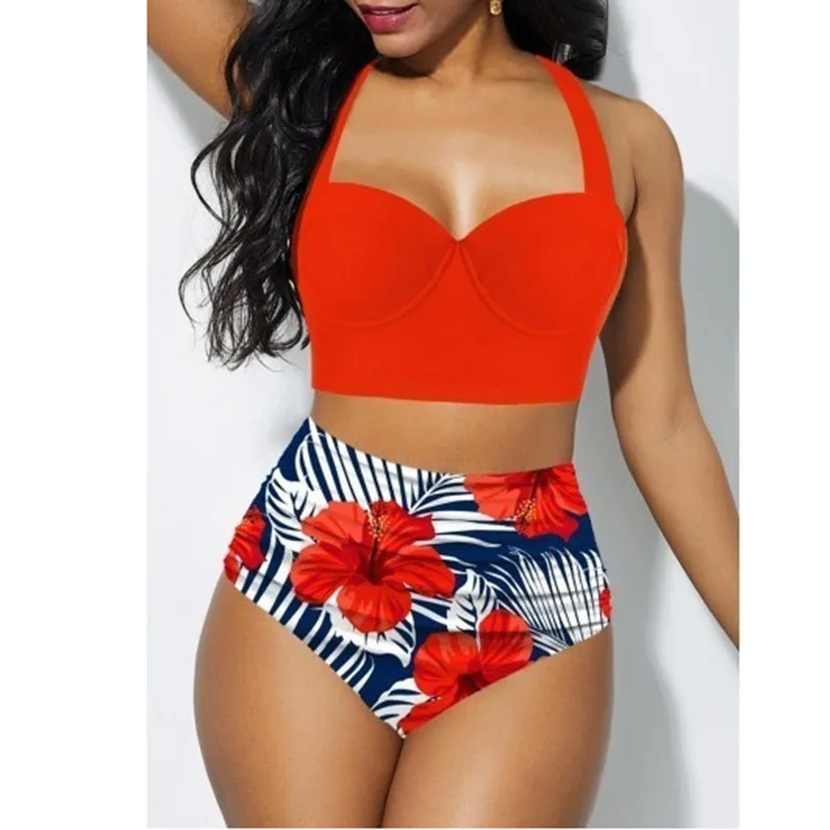 Женский раздельный купальник, бикини с принтом и высокой талией, купальный костюм для женщин, размера плюс