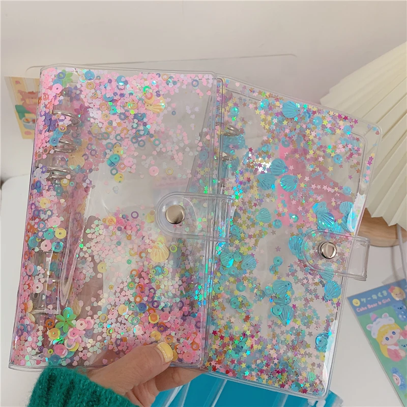 A5 A6 креативная Милая прозрачная ручная книга с цветными свободными листьями с 6 кольцами, школьная тетрадь, милые школьные принадлежности