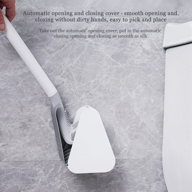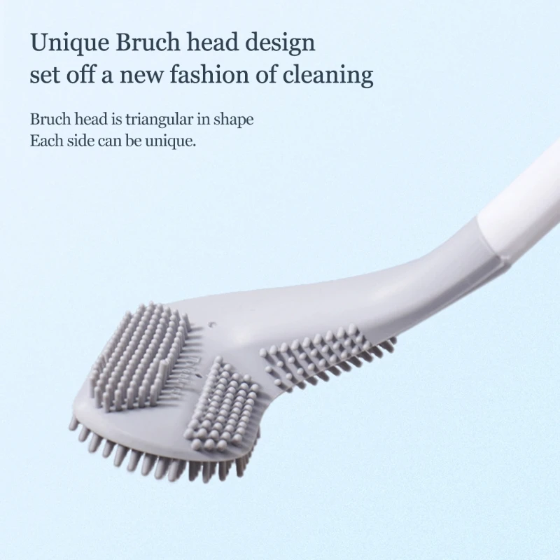 Уникальный дизайн головки щетки треугольный, каждый угол подходит для унитаза, не оставляя слепых пятен. Можно глубоко очистить любой уголок туалета. Легко чистить углы и темные желобки.