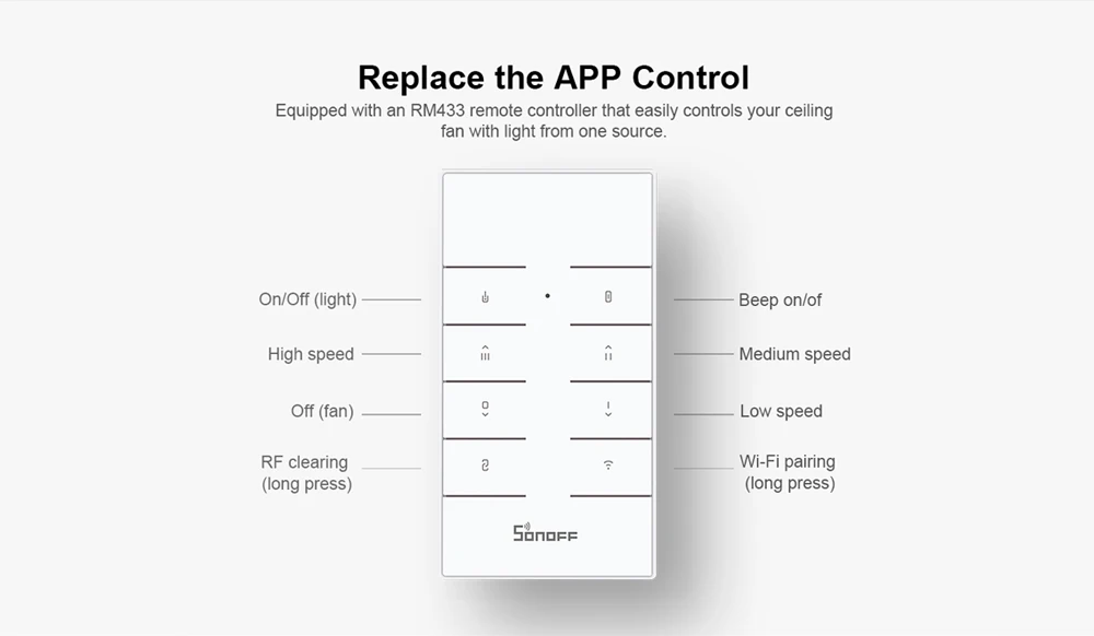 Оснащен пультом дистанционного управления RM433, который легко контролирует Ваш потолочный вентилятор из одного источника