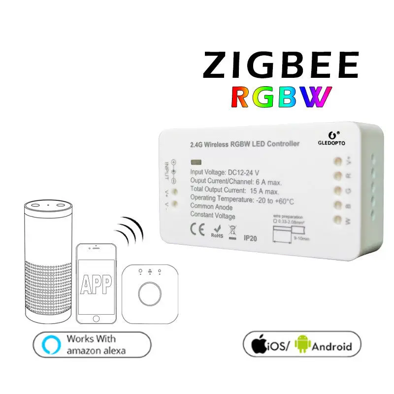 Светодиодный контроллер Gledopto ZigBee ZLL, постоянный ток, 12 В, 5050, RGBW, RGBWW, светодиодная полоса освесветильник, лента 5 м, 10 м, лента, диммер, умный дом для Alexa, Google