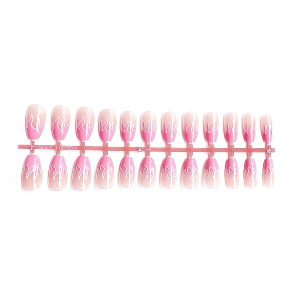 Накладные ногти с пламенем, удлиненные, синиерозовые, 24 шт.