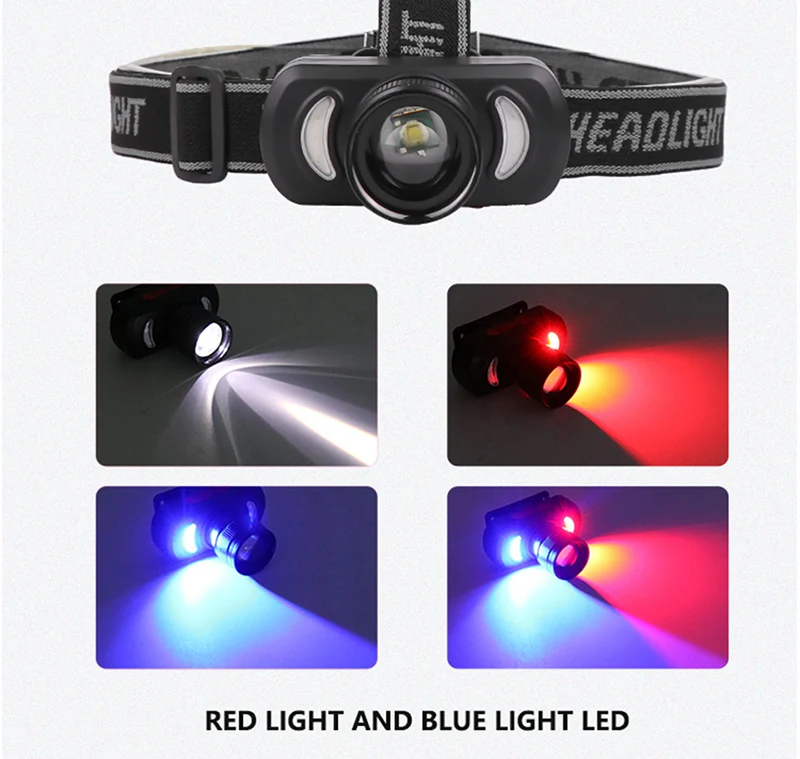 Мощный головной светильник с зарядкой от USB, светодиодный головной светильник со встроенным аккумулятором, водонепроницаемый головной светильник, белый, красный светильник, ночная рыбалка,