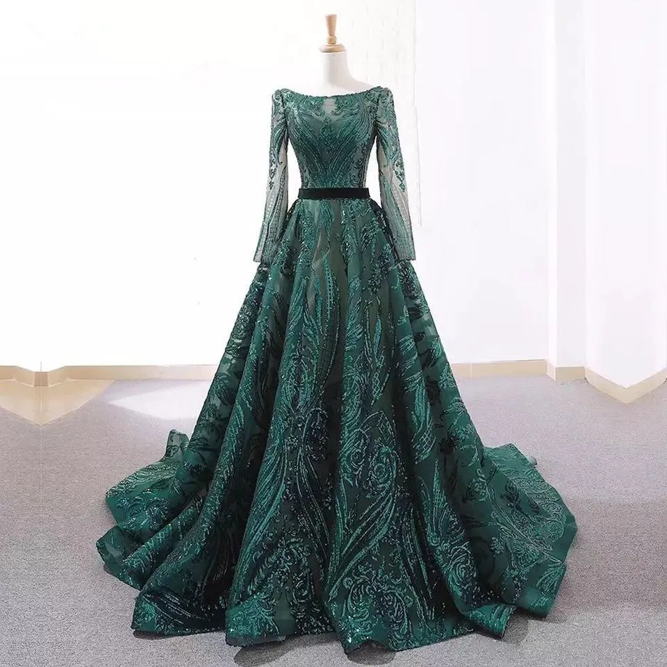 Женское винтажное вечернее платье Дубай, зеленое блестящее платье-трапеция с длинными рукавами, блестящее платье для выпускного вечера, 2022