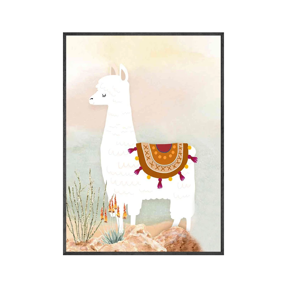 Лама и кактус, искусство, абстрактная пустыня, холст, картина, подарок мальчику, Настенная картина, картина для детской комнаты, декор в стиле бохо для детской комнаты