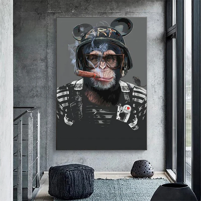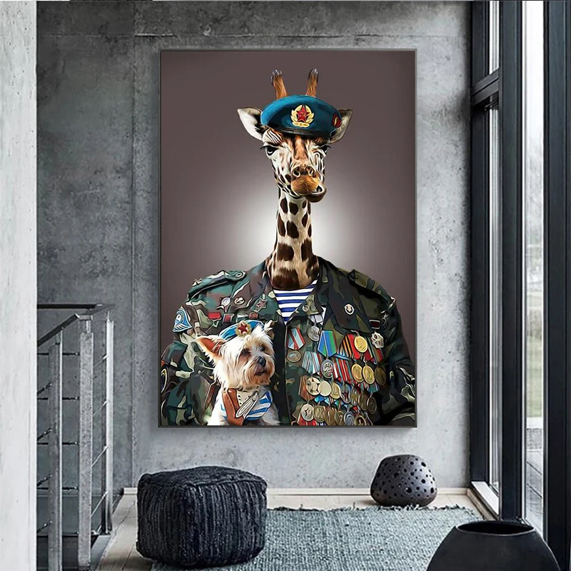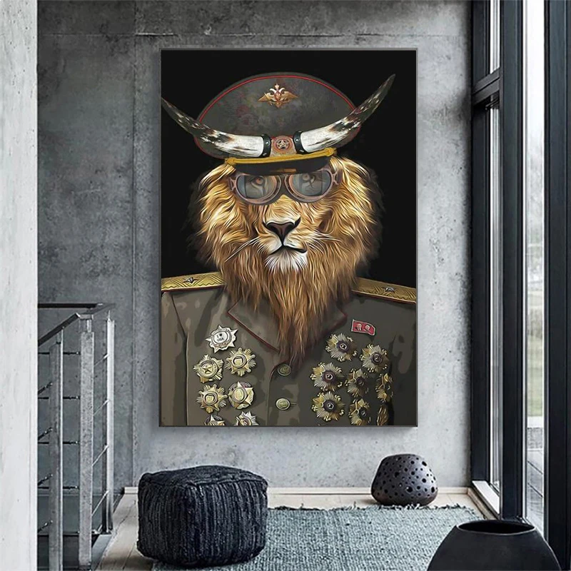 Скандинавский домашний декор Лев общий и обезьяна солдат забавные художественные принты животные живопись на холсте Декоративные плакаты картины