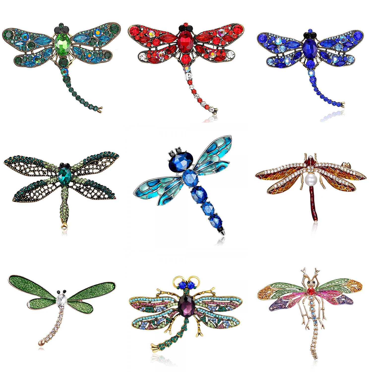 Эмалевая брошь в форме стрекозы, стразы, изысканные шикарные насекомые, брошь булавка в виде животного, украшение для костюма, значок на лацкан, подарки