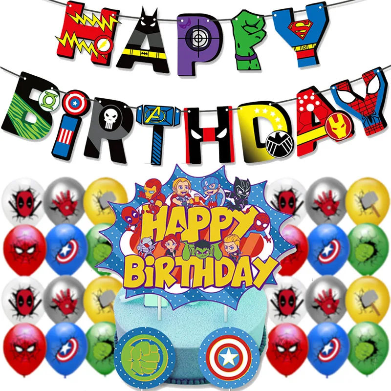 Аксессуары для дня рождения Disney, набор воздушных шаров с флагом, Спайдермен, Халк, Дэдпул, Капитан Америка, Тор, Железный человек, украшение для вечерние ринки