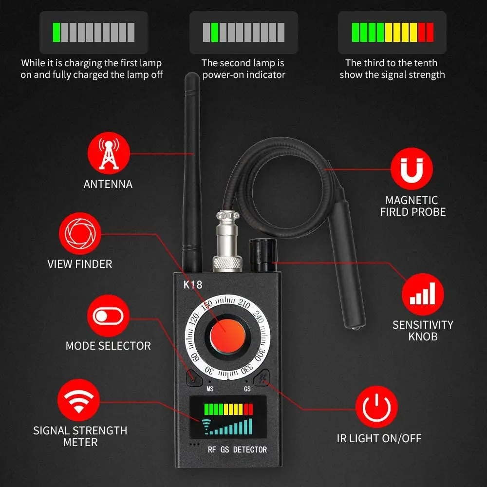 Изысканный прочный детектор радиосигнала анти-шпионская камера K18 ...