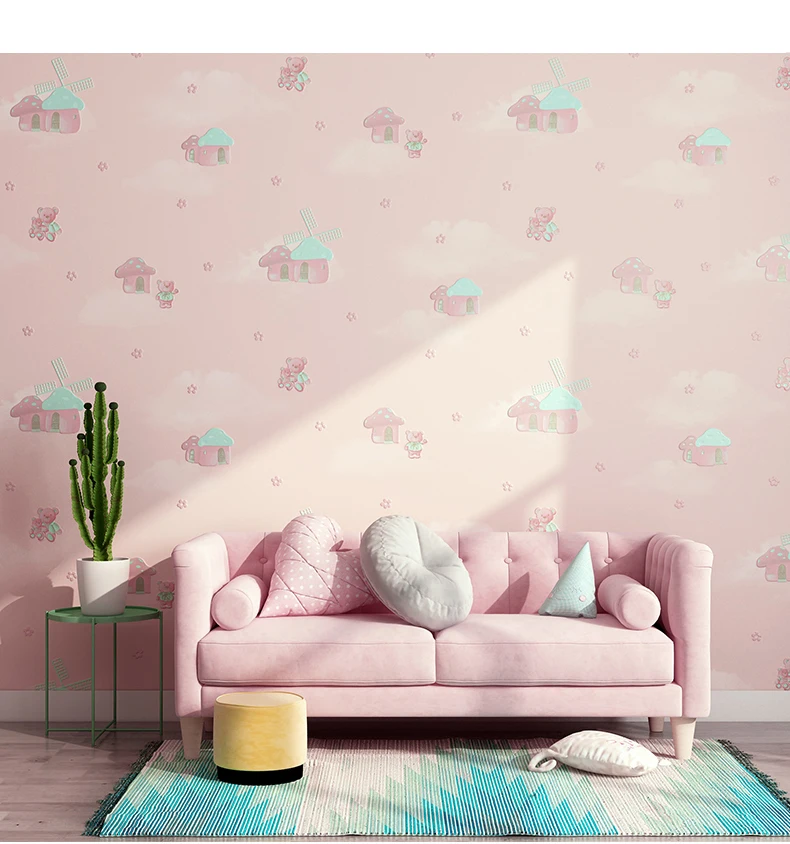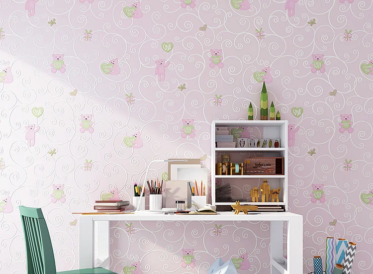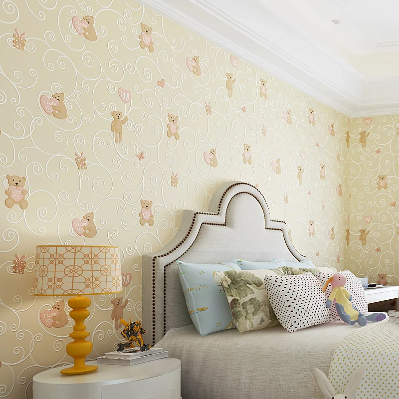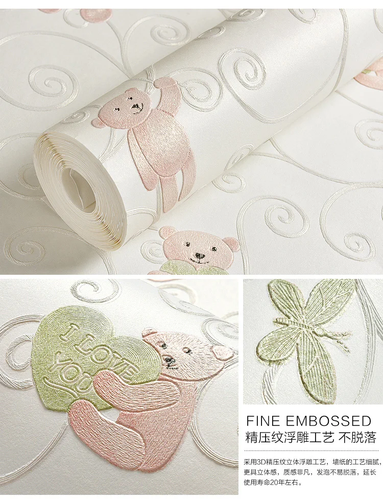 Экологически чистые плотные детские комнатные спальни для девочек и мальчиков с мультяшным медведем 3D стерео нетканые обои