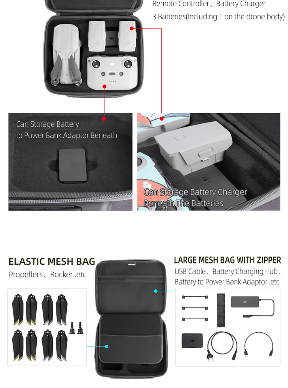 Особенности:-(Примечание: Дрон Mavic Air 2, пульт дистанционного управления и аксессуары в комплект не входят. Сумка на плечо не оснащена карабином)-Точная формовка и комплексная защита Mavic Air 2.-Сумка пульта дистанционного управления используется для Mini 2 и Mavic Air 2/2S