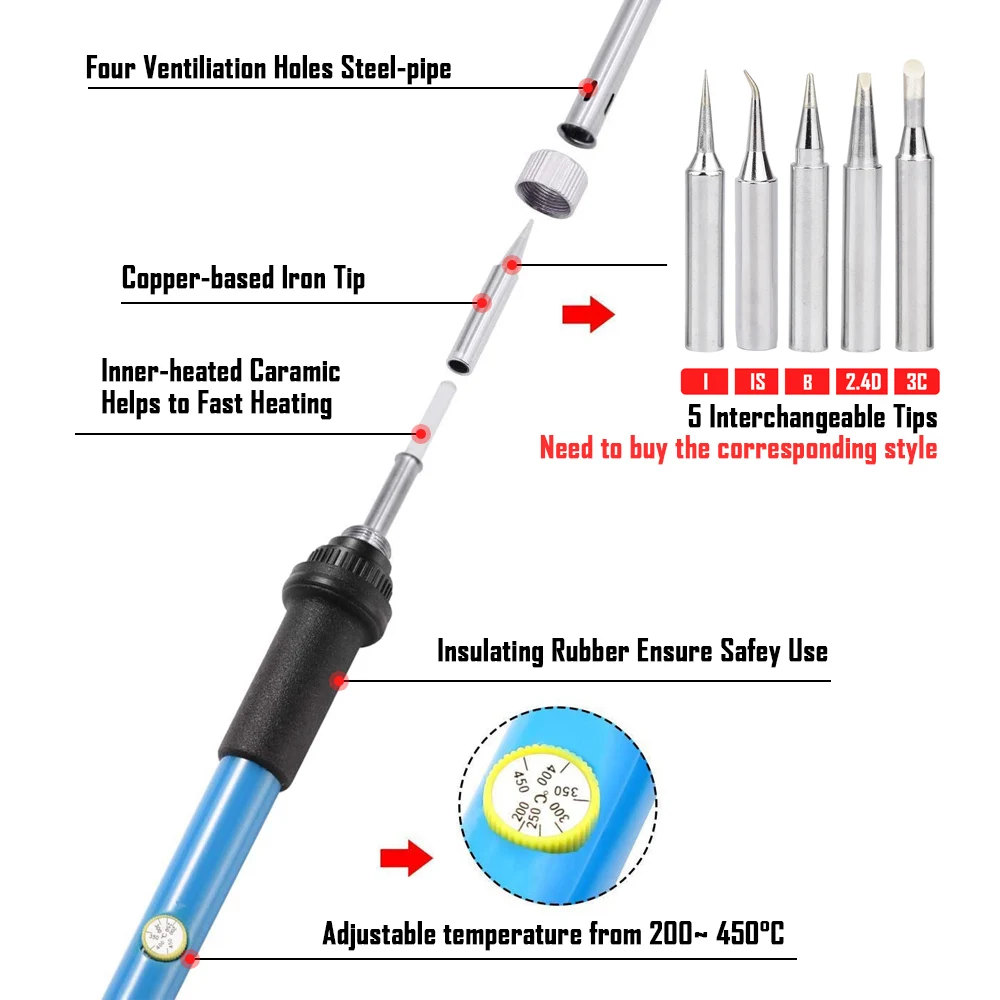 Электрический паяльник с регулируемой температурой, 60 Вт, 220110 В, Сварочная паяльная Бытовая наладочная станция, тепловой карандаш, инструмент для ремонта наконечников