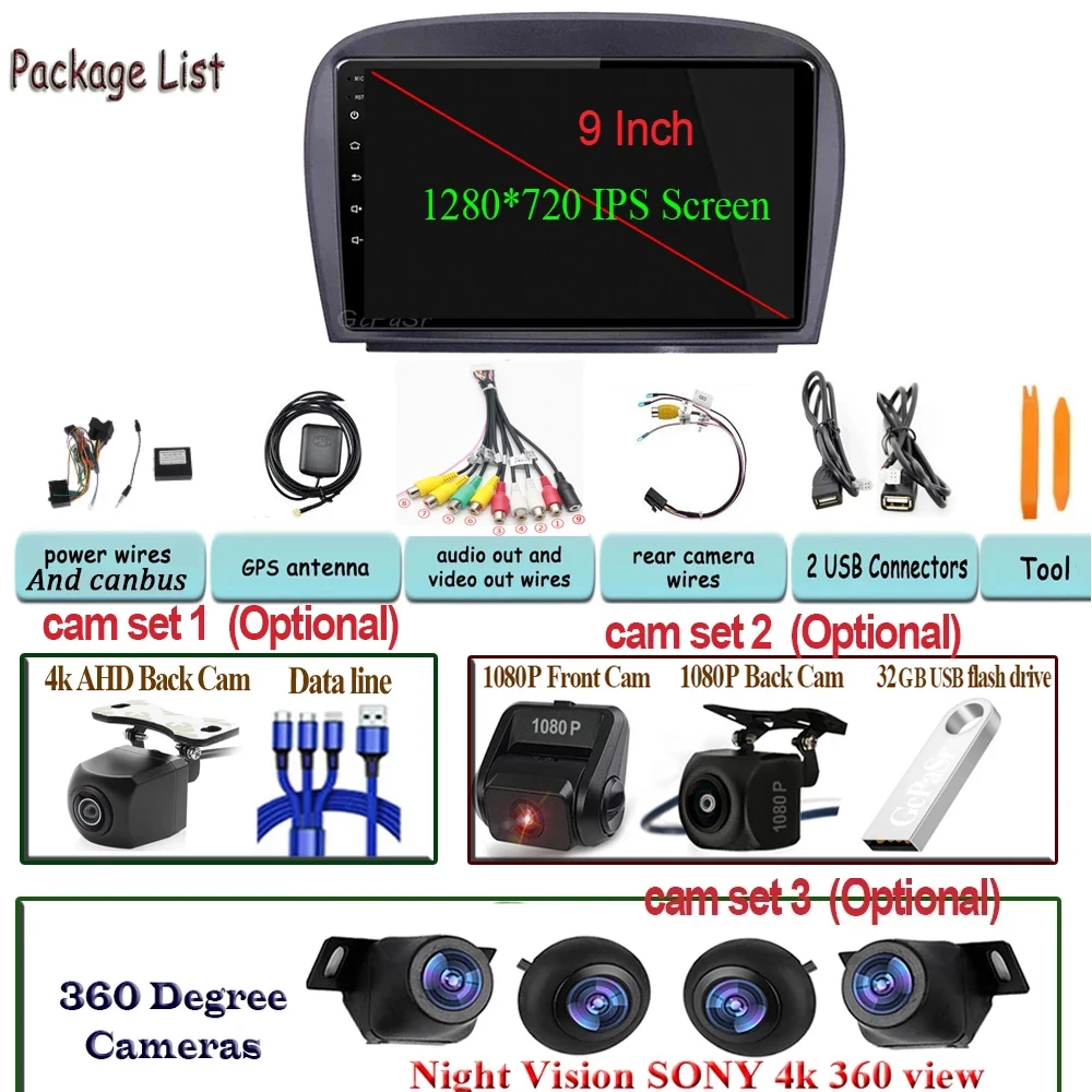 Android 11 для Mercedes SL R230 SL350 SL500 SL55 SL600 SL65 2001-2007 DSP 360 камера IPS экран 9 "GPS навигация