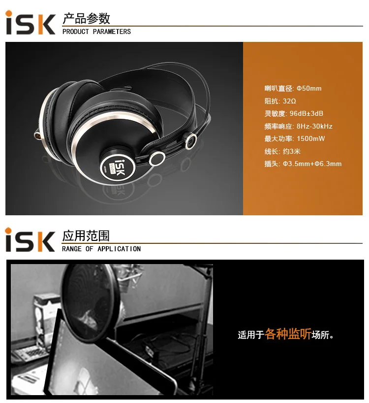 Полностью закрытые профессиональные наушники ISK HD9999 с высоким содержанием протеина, HD монитор для DJ, звукосмеси, запись, студийный мониторинг