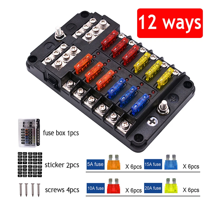 Блок предохранителей 12 способов, держатель со светодиодным индикат...