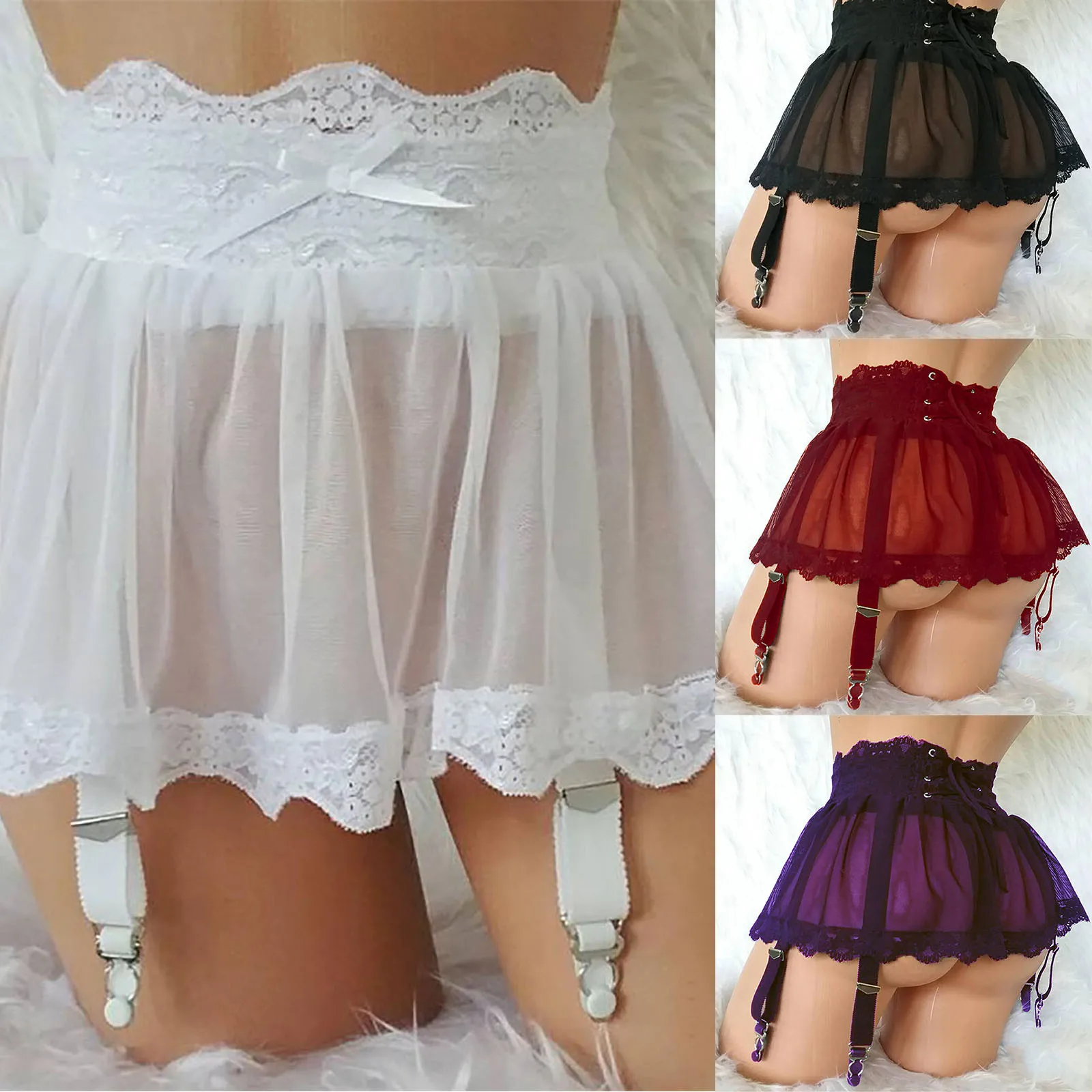 Женское сексуальное нижнее белье, юбка с подвязками, прозрачное кру...