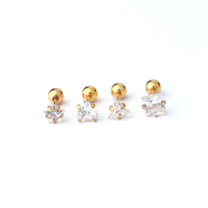 1 шт мини 3-5 мм Сердце треугольный циркон серьги гвоздики для женщин 2021 модные ювелирные изделия из нержавеющей стали пирсинг серьги для подростков