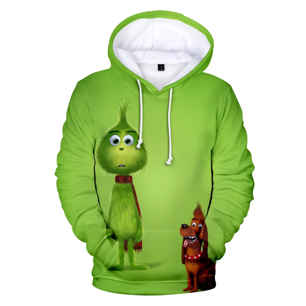 Толстовка с капюшоном для мужчин, зеленый свитшот, худи с рисунком аниме Grinch, одежда для отдыха, модная уличная одежда с 3D рисунком