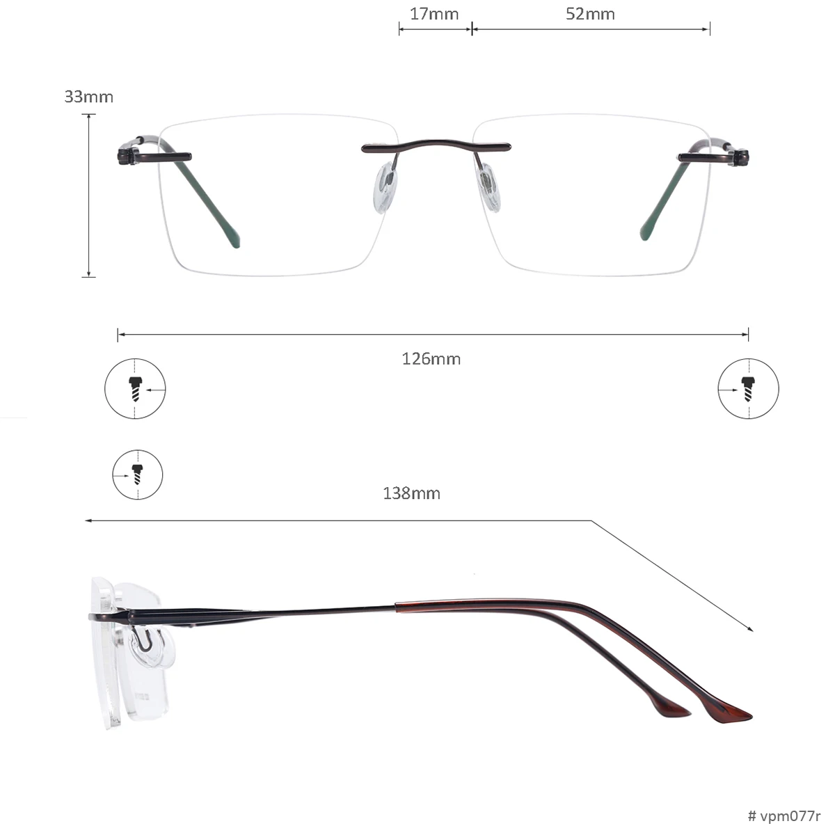 Прямоугольная металлическая модная оправа для очков без оправы для мужчин и женщин для оптических линз при близорукости при пресбиопии