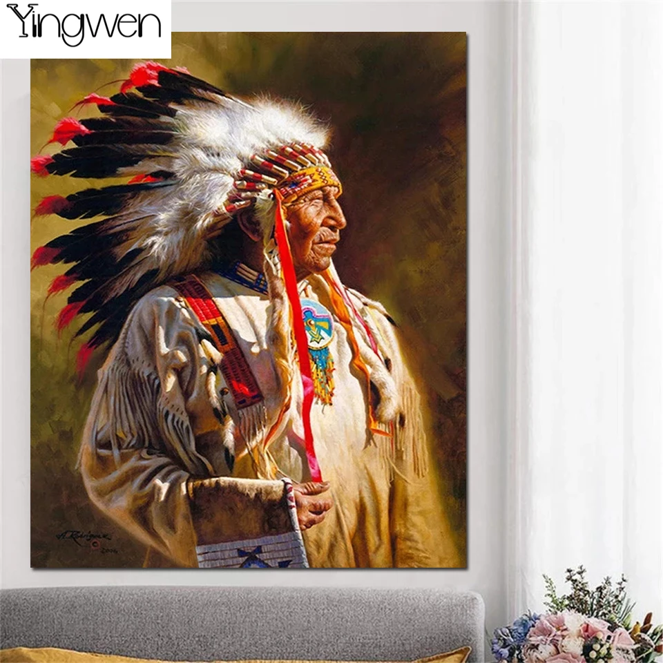 5D алмазная живопись "сделай сам", Оригинальный индийский портрет, картины стразы, полностью Алмазная вышивка, мозаика, ручная работа в индейском стиле