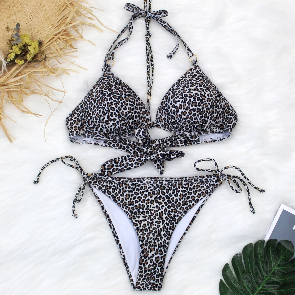 Женский купальник с леопардовым принтом, купальный костюм из двух п...