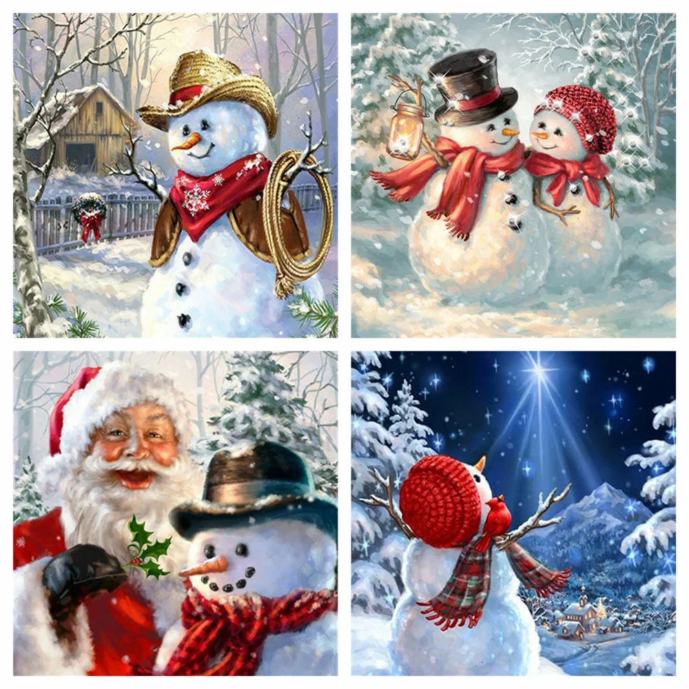 Алмазная живопись Huacan, полноразмерная 5d мозаика с изображением снеговика, Санта-Клауса, для творчества, мультяшный подарок на Рождество