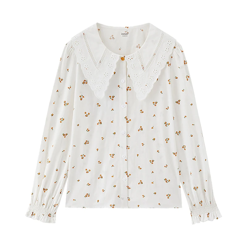 Блузка Женская весенне-осенняя, с вышивкой и отложным воротником