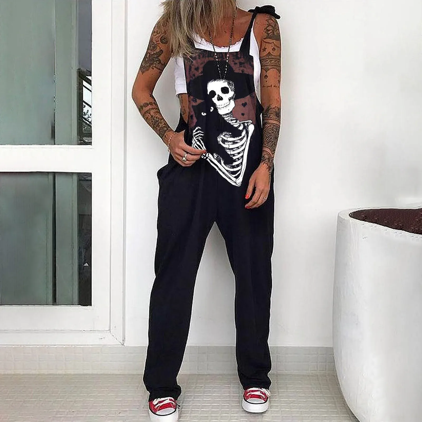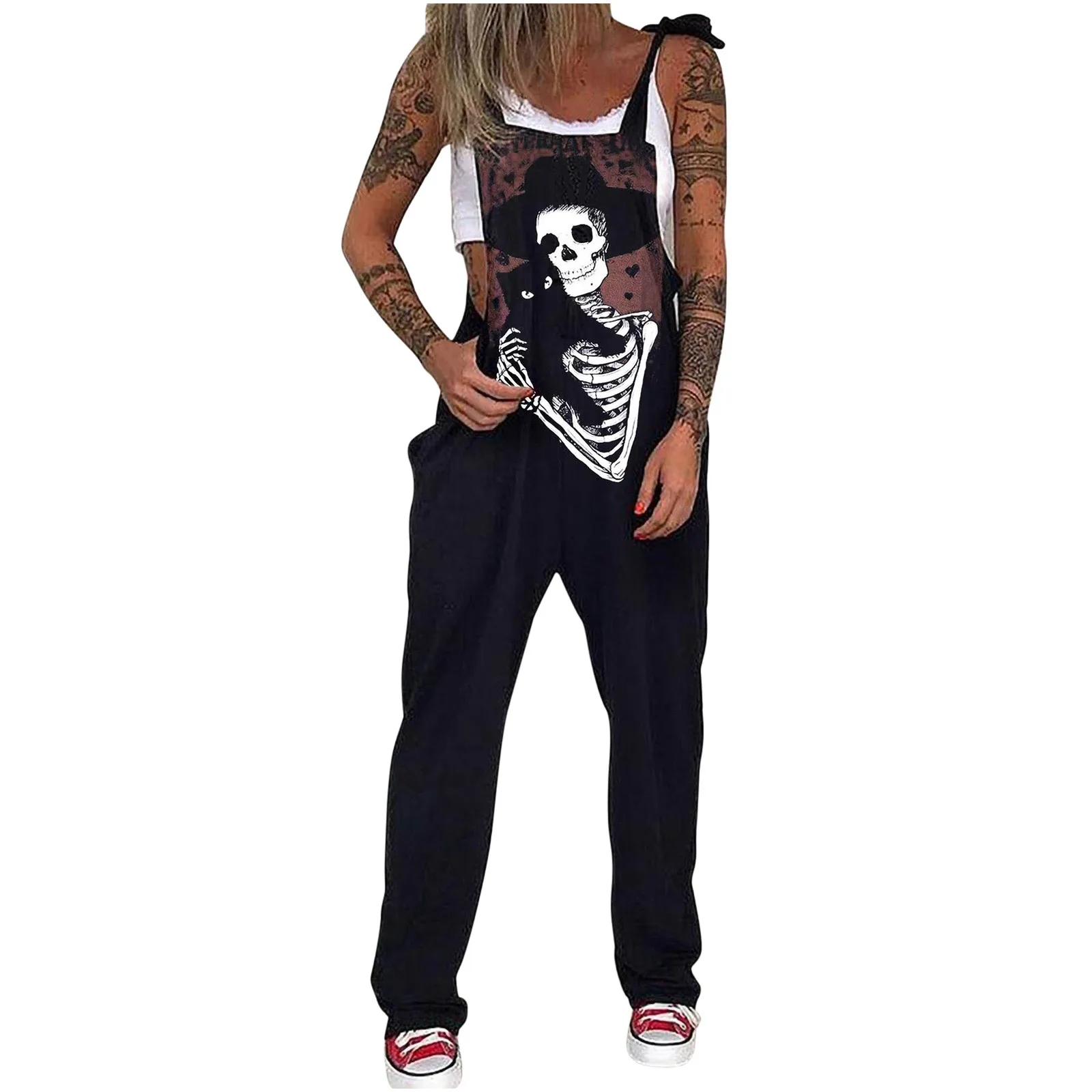 Женский комбинезон с принтом черепа, Свободный Повседневный комбине...