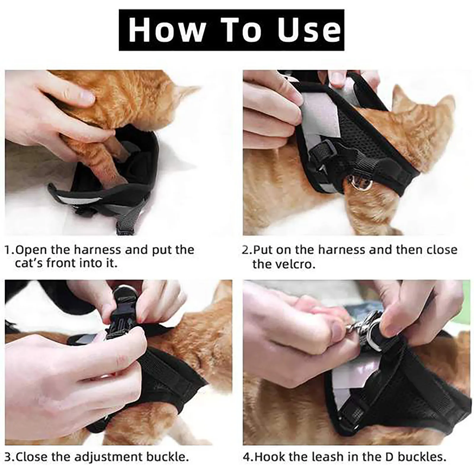 [Легко носить]: жгут проводов использует две быстросъемные пряжки, легко носить и надевать. Отрегулируйте его в наиболее удобное положение, чтобы избежать побега кошек.