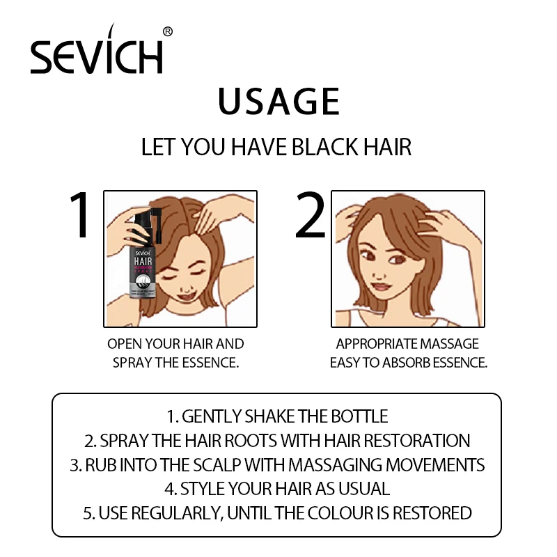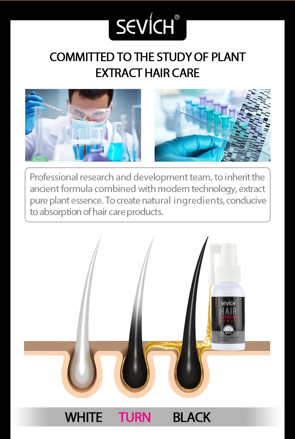 Спрей для роста волос Sevich, средство для лечения седых волос, восстановление черных волос, против выпадения волос, белая Сыворотка для восстановления волос, продукт для выпадения волос