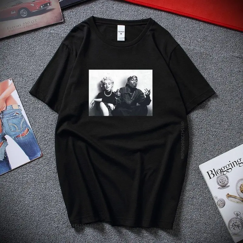Модная дизайнерская футболка Tupac Marilyn Monroe 2, летняя уличная одежда в стиле хип-хоп, хлопковая футболка, Новое поступление, Мужская футболка
